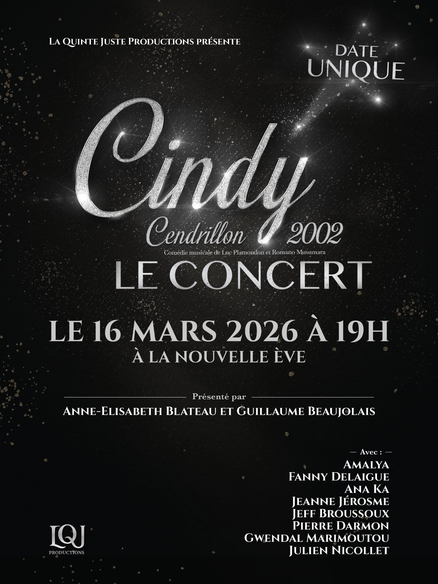 Alors que cette œuvre devenue culte malgré elle fêtera ses 25 ans en 2027, Cindy : Cendrillon 2002 revient le temps d’une soirée exceptionnelle pour faire résonner ses tubes iconiques avant que les douze coups de minuit retentissent ! Rendez-vous le jeudi 16 mars 2026 à la Nouvelle Eve pour un concert hommage avec une constellation de stars pour rendre cette célébration unique.