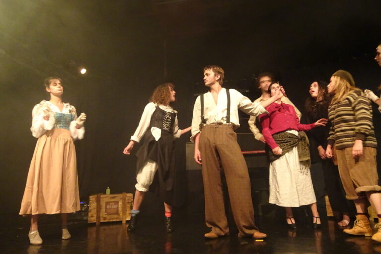 Si le reste du cast semble parfois un peu plus en retrait, c’est sans doute en raison du format resserré — environ une heure et quart — qui condense une intrigue dense et riche en ramifications. Le spectacle est présenté en français, les élèves du Cours Florent ayant encore une fois assuré l’adaptation. La cohérence du livret est parfois difficile à maintenir, certains personnages sont présentés de manière fugace, ne laissant pas toujours le temps au spectateur de saisir rapidement les interactions entre les protagonistes. Le rythme s’accélère ensuite et le final, haletant, ne déçoit pas. On ressort avec le sentiment d’avoir assisté à une véritable appropriation du mythe, portée par une énergie collective sincère et communicative.