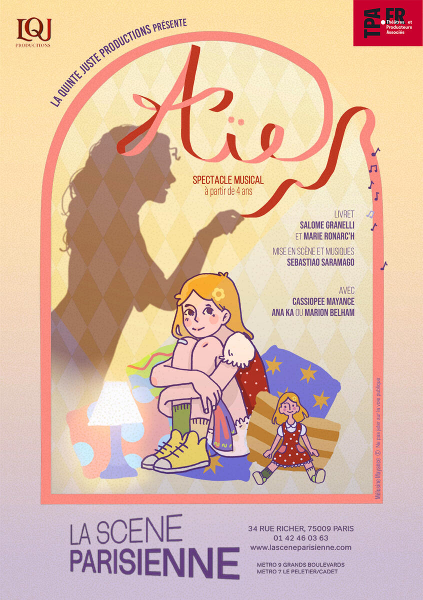 Au-delà de la qualité du livret et de la partition, il faut souligner le talent des deux interprètes qui donnent vie à ces personnages aussi drôles que touchants. Ana Ka, que vous avez pu applaudir notamment dans Le Fantôme de l’Opéra ou Priscilla Folle du Désert, incarne à merveille la Fée Bobo en lui apportant toute son empathie et sa douceur avec sa voix si envoutante, que ce soit dans les chansons pop ou dans les berceuses. C’est une grande artiste a pu aussi bien nous enchanter sur scène lors de nombreux spectacles que lors de ses doublages dans de célèbres dessins animées. Elle est accompagnée de la jeune Cassiopée Mayance (Les Mystérieuses Cités d’Or, le spectacle musical, Charlie et la Chocolaterie) qui interprète Aïe avec toute la fragilité et l’émotion nécessaire, tout en sachant montrer son caractère au fur et à mesure de l’histoire. Rapidement très attachante, elle offre un repère aux plus jeunes qui s’identifient à elle et qui lui répondent sans avoir peur. Une belle complicité se tisse entre le public et cette jeune fille pendant que certains parents se retrouvent parfois dans l’image de la mère débordée également incarnée par Ana Ka dont les changements rapides de costumes avec la Fée Bobo impressionnent ! Ensemble, elles construisent cette histoire pour déconstruire nos peurs et permettent aux enfants d’oser se confier sur ces bobos invisibles qu’ils ont du mal à nommer.