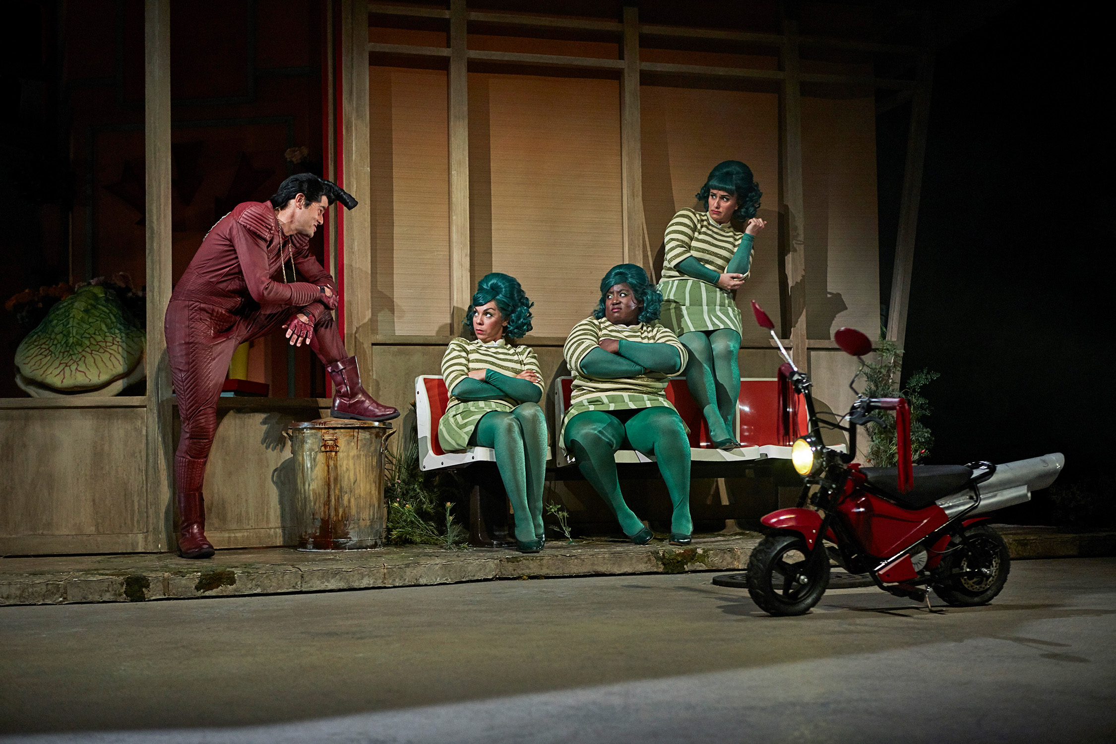 Derrière cette superbe distribution, la véritable étoile du spectacle demeure la plante : au cœur de l’intrigue comme de la scène, elle se déploie jusqu’à envahir tout l’espace scénique. Présentée comme une marionnette grandissante, elle fascine et effraie le spectateur. Elle est incarnée par un duo talentueux du chanteur Daniel Njo Lobé (Gypsy) et du marionnettiste Sami Adjali qui parviennent à coordonner la voix aux mouvements de la plante de manière particulièrement convaincante.