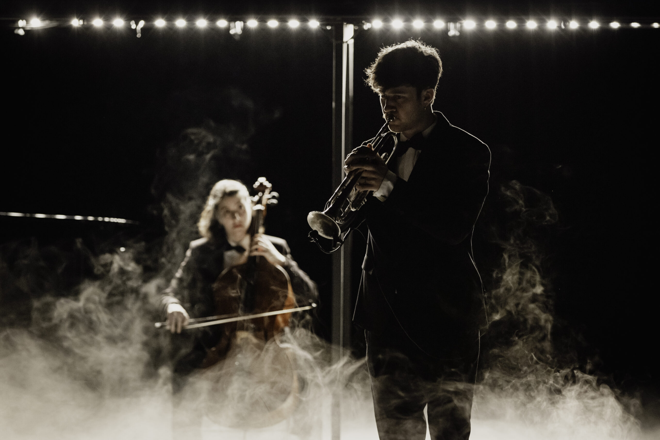 Pour accompagner cette narration, trois musiciens (une trompette, un piano et un violoncelle) accompagnent les comédiens tantôt de manière diégétique ou extradiégétique. Ils assurent les transitions, appuient la narration et créent par leurs interprétations jazz une atmosphère entrainante, mouvante et ciselée. Aussi étrange que puisse paraître, ce mélange d’histoire fantastique et de musique improvisée cuivrée composée par Airelle Besson fonctionne parfaitement bien.