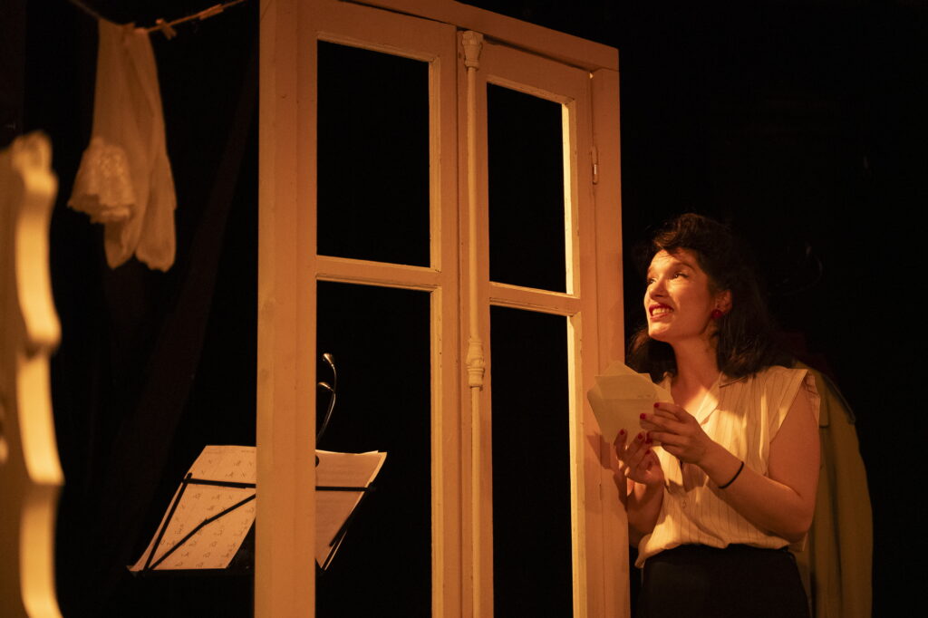 Sur scène, 4 artistes sont distinctement présents. Laura Kimpe, dans le rôle de Lucie, propose une interprétation authentique et oscille entre légèreté et force. Sa voix lyrique vient surprendre la dynamique musicale instaurée; le premier passage de la gouaille parisienne à une voix plus enlevée n’est pas sans surprendre. La façon dont elle porte le rôle de son amoureux absent est d’une infinie tendresse et met en exergue son habilité à passer d’une émotion à une autre. Cécile Parichet y incarne une amie de Lucie, une sorte de repère indéfectible dans sa vie bousculée. La comédienne est remarquablement juste dans sa posture et amène de la consistance dans les moments moins actifs. Pour soutenir la musique, deux musiciens (accordéon, clarinette…) Olivia Leblanc et MarkoDjordjevik Sajac se fondent dans le spectacle apportant une dimension sensorielle et immersive très forte ; les pavés et les ruelles de Paris semblent à portée de main. Les individualités officient ensemble pour porter le récit dans lequel chacun trouve sa place.